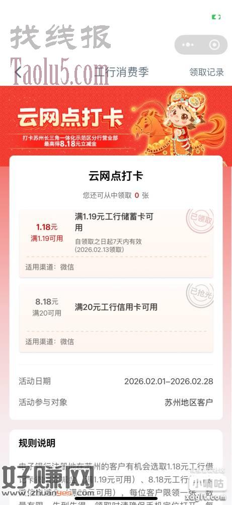 苏州云网点打卡 不限卡立减金,