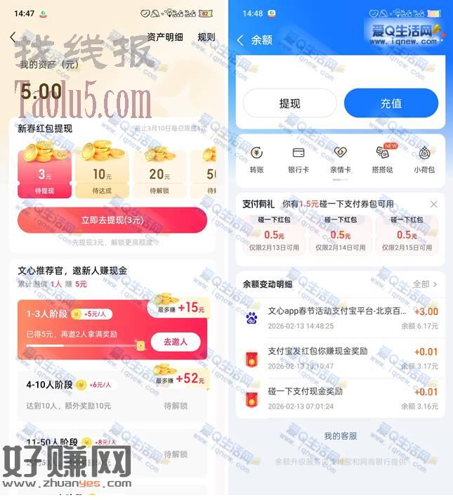 有5元现金,可以直接提现3元秒到,没有直接入口,活动有邀请