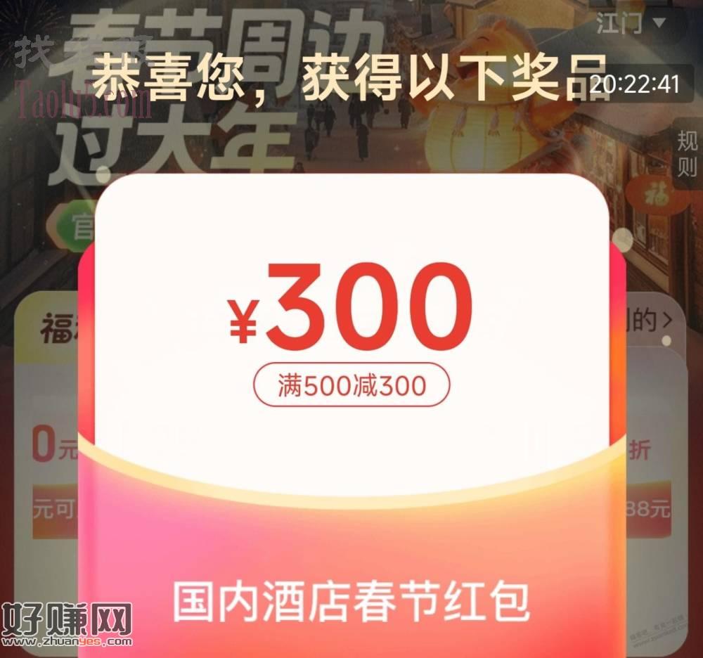 同程APP酒店券水?点一下中500-300
