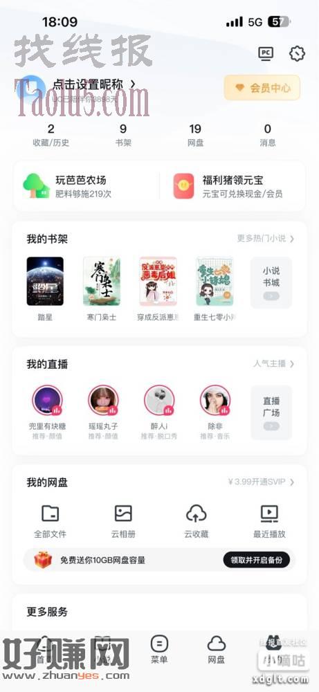 登陆-我的-点福利住猪领元宝-能看见