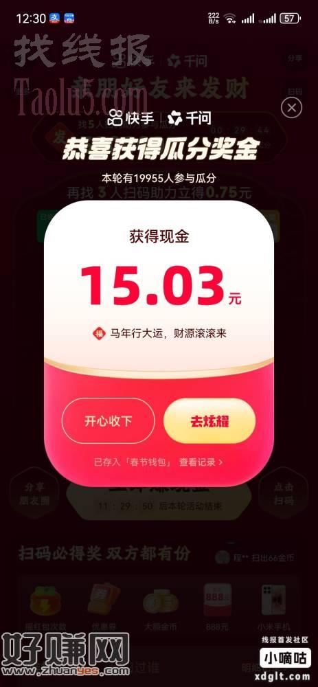 都去玩快手 半小时瓜分30万 刚才分了15块