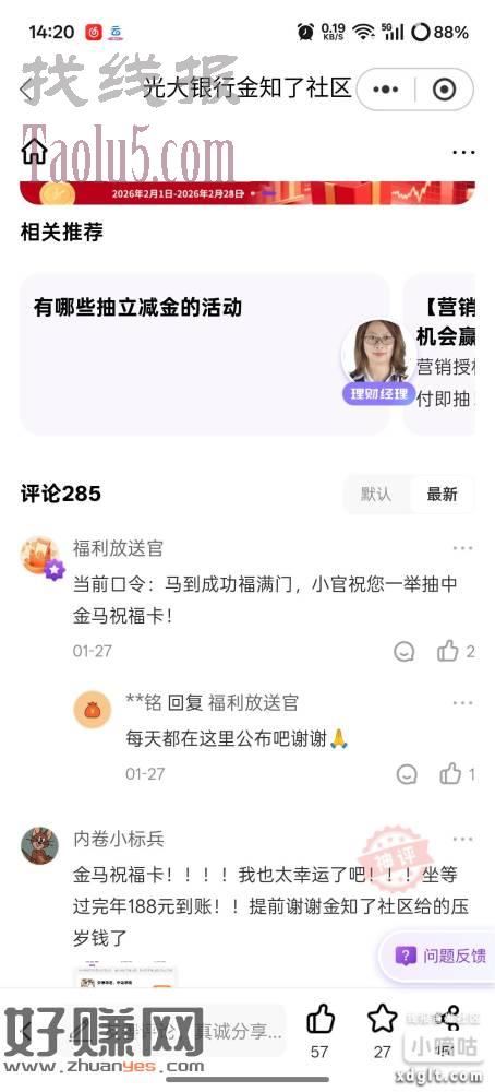 光大 两个话题15字抽立减