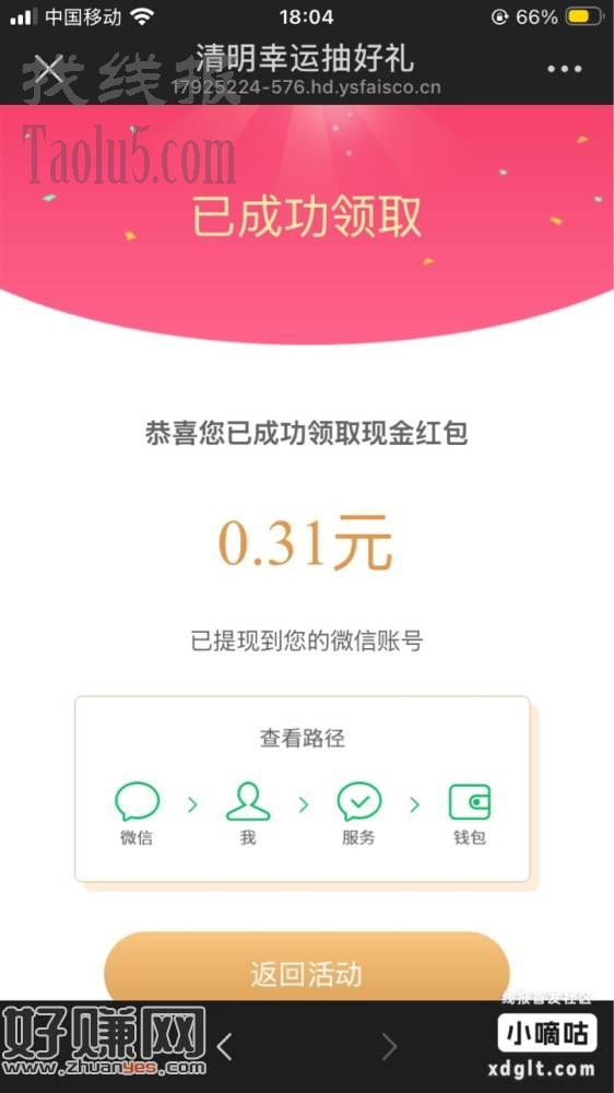 微信公众号抽奖(可能要先关注公众号,以防收不到抽奖奖励),我中了四份0.31元。