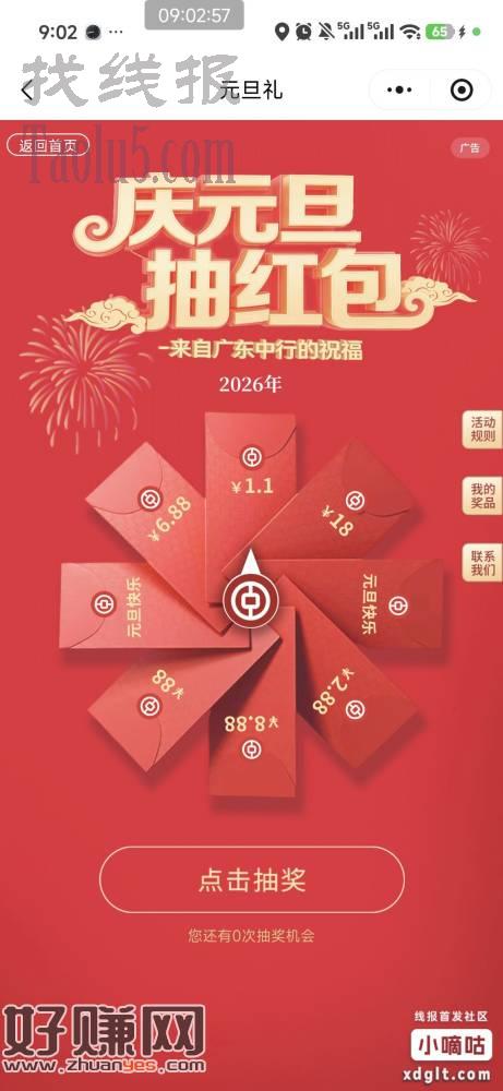 广东省分行中行小程序,横幅抽元旦红包立减金