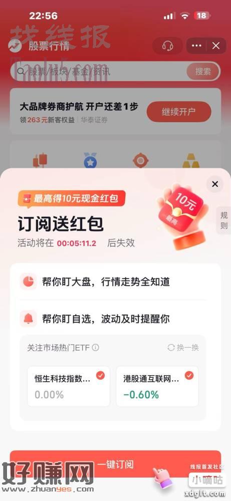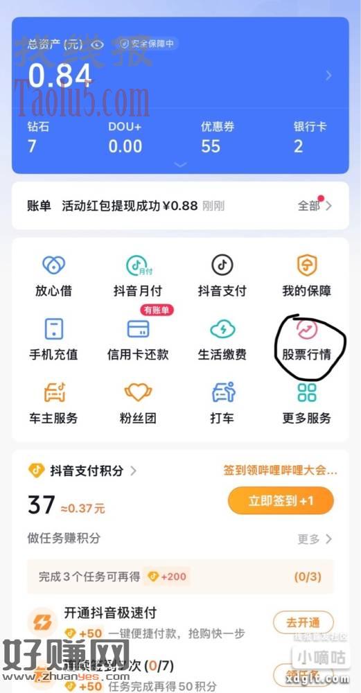 抖音打开钱包找到股票行情点进去订阅得随机红包