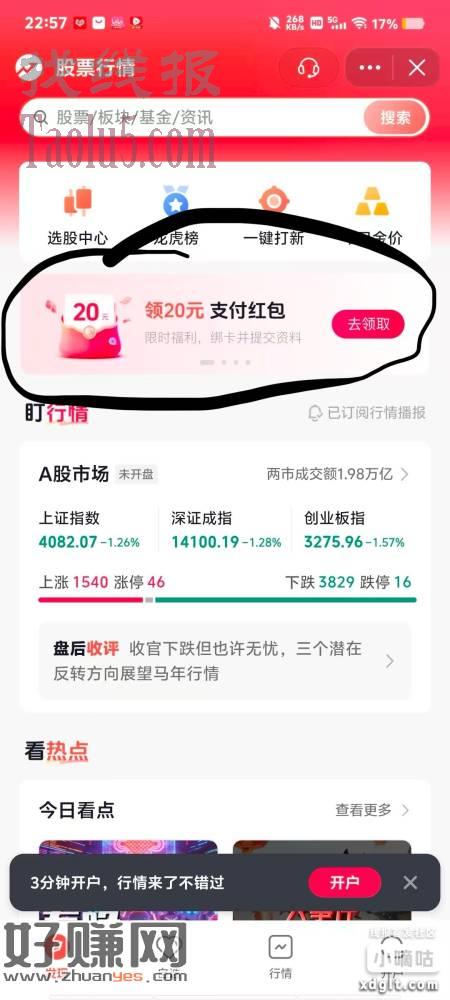 股票开户20支付红包填写完成后不用等回访电话,退出再进来立得