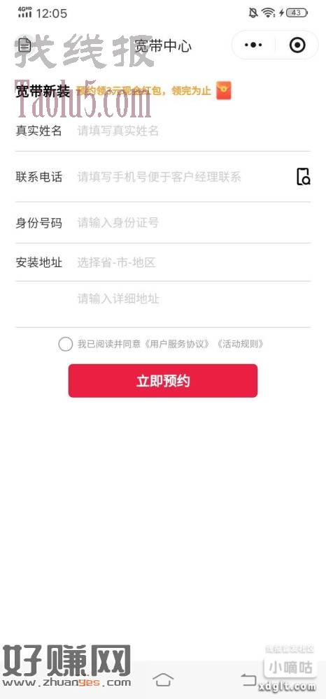 宽带预约3元红包,自己用身份【违禁内容】,有手机号的去