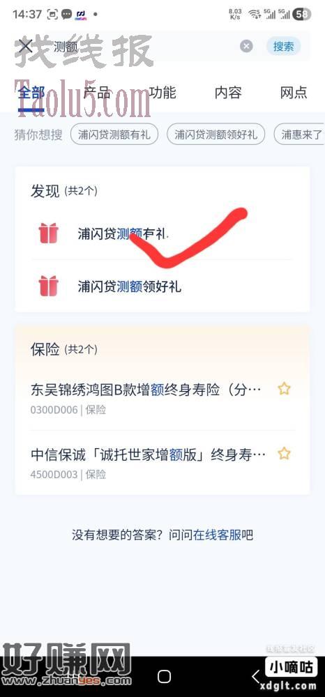 浦发银行APP 搜测额 第一个 第二个 都可以领