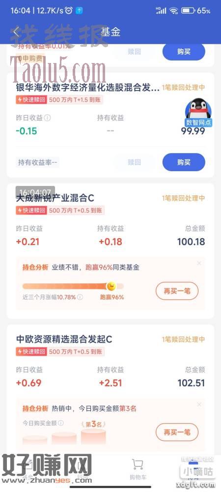 跟着表妹我买的那个企鹅银行的基金可以赎回了 我基本上不亏钱。