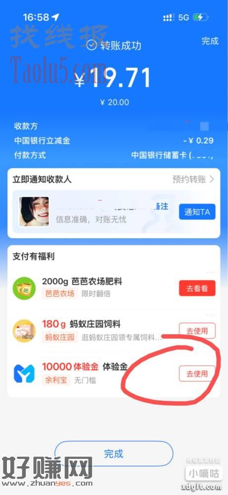 忮苻寶转賬页面领1w余利寶体验?,给小号或家人号转任意?額就行