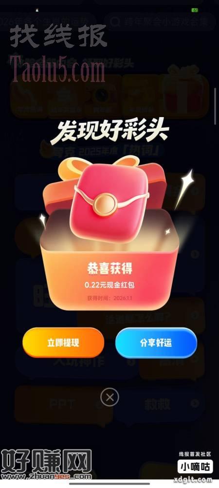 夸克–元旦活动–抽中0.22元,兄弟们都去试试。