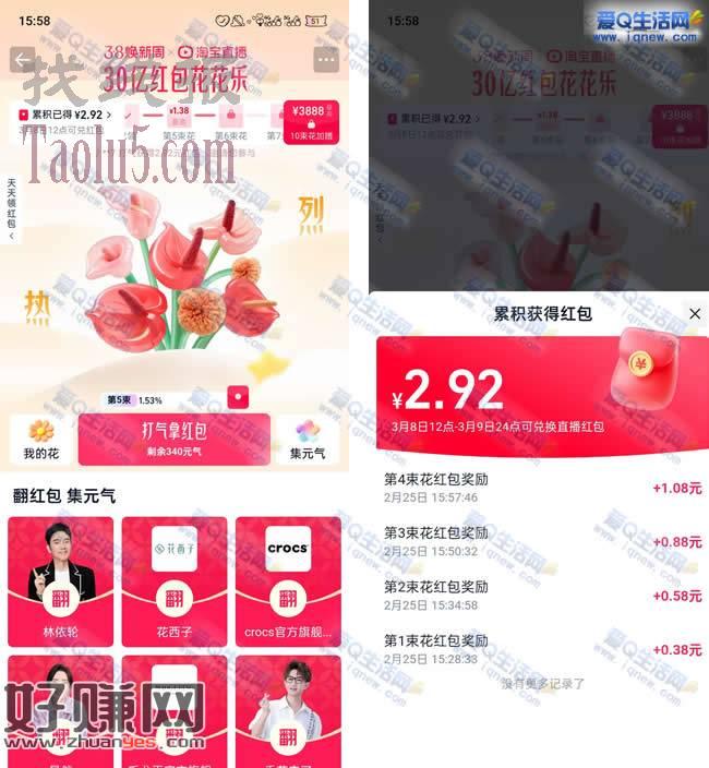 淘宝红包花花乐瓜分30亿 亲测2.92元无门槛红包
