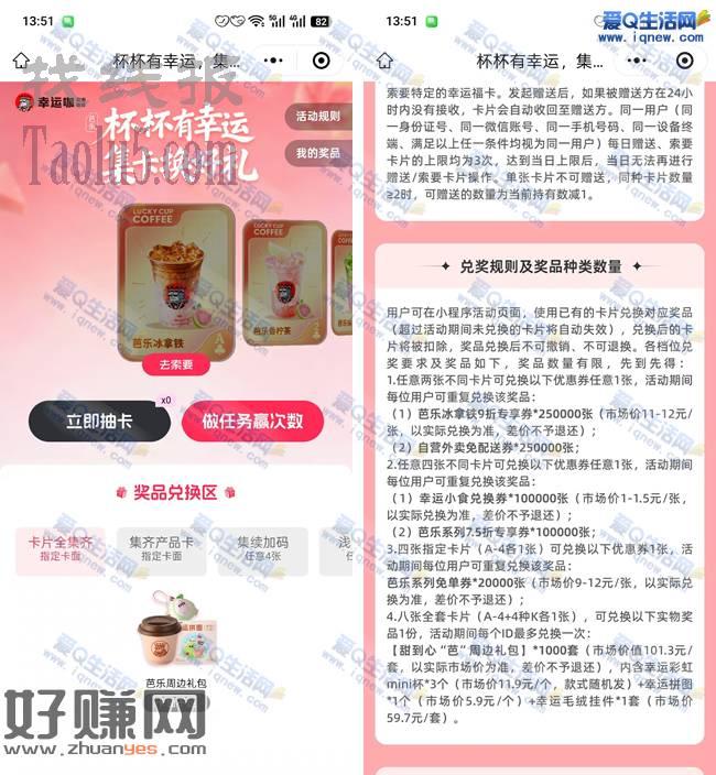 幸运咖集卡换免单饮品/零食 共计12.1万份免单