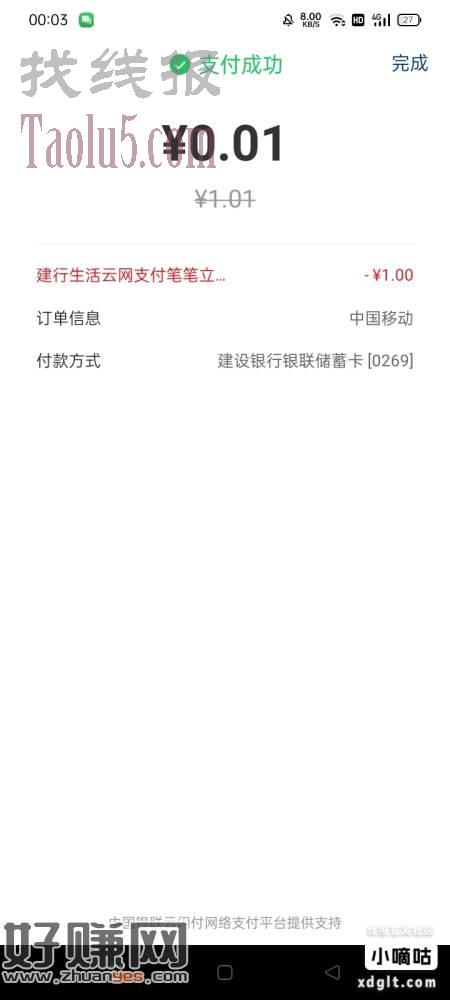 中国移动0.04充4话费,昨天没有了今天更新了,移动app自定义充1.01选云闪付再选建行生活支付会减1,重复4次目前还有快去