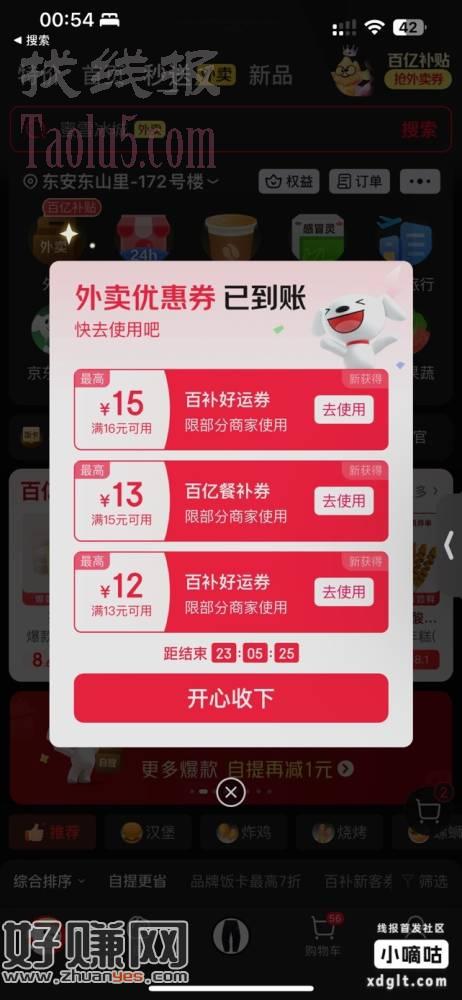 狗东首页-闪送,自动弹券16-15,15-13,13-12,可以用来点外卖,点外卖非常便宜