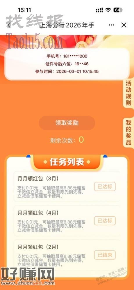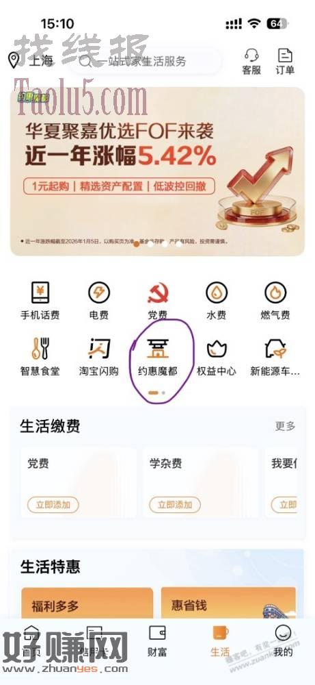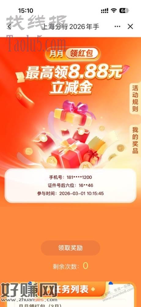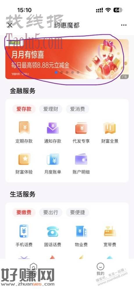 路径:建行app-右下角生活-上面中间 约会魔都 图标点进去-月月有惊喜 每日最高领8.88立减金