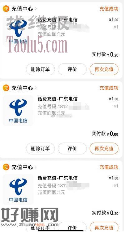 打开链接淘宝APP扫码->抽话费券,电信用户每天都可以抽3次我亲测0.4充3亓话费