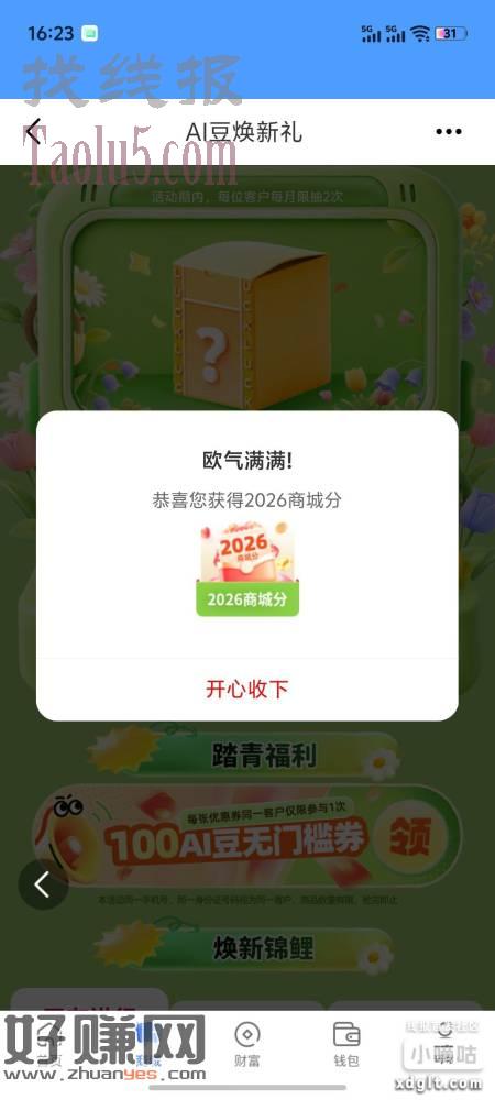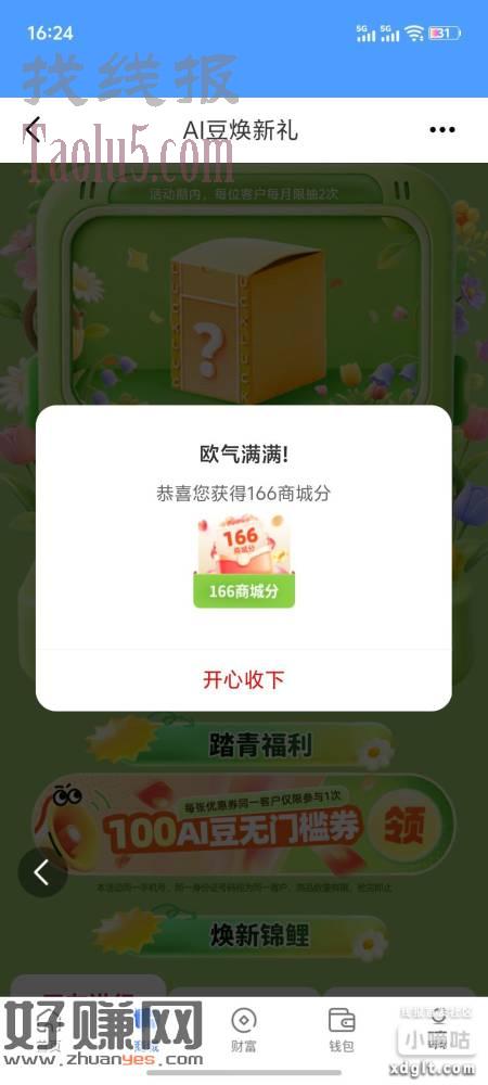 和包app 底部-商城 横幅第二个 有水2次机会 积分能兑换