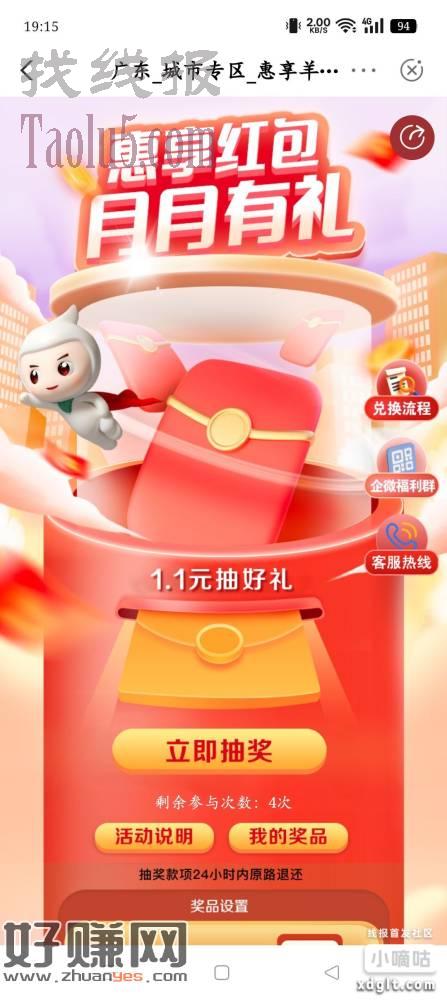 广东农行,进城市专区,找到惠享羊城,如图这个活动,应该有部分人会收到瘦腰短信,其他人不清楚能不能参与,分别支付4次1.1,秒返,保底2毛微信立减金。
