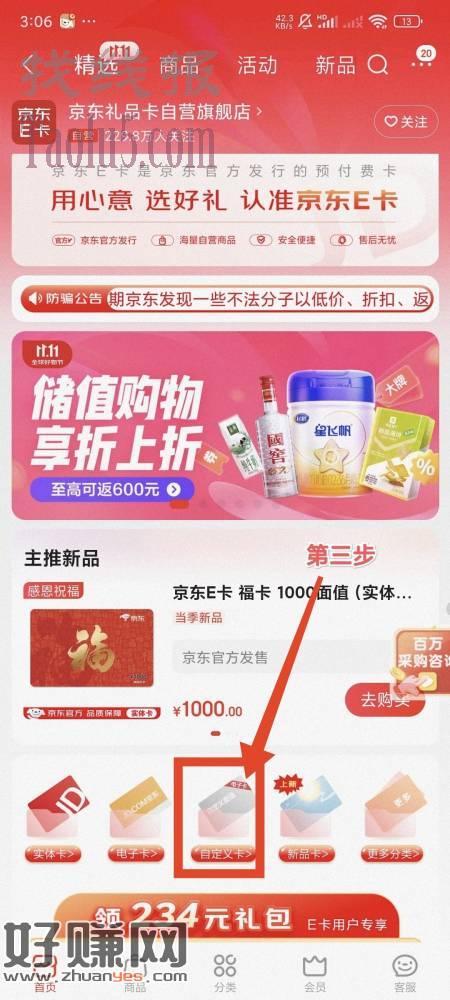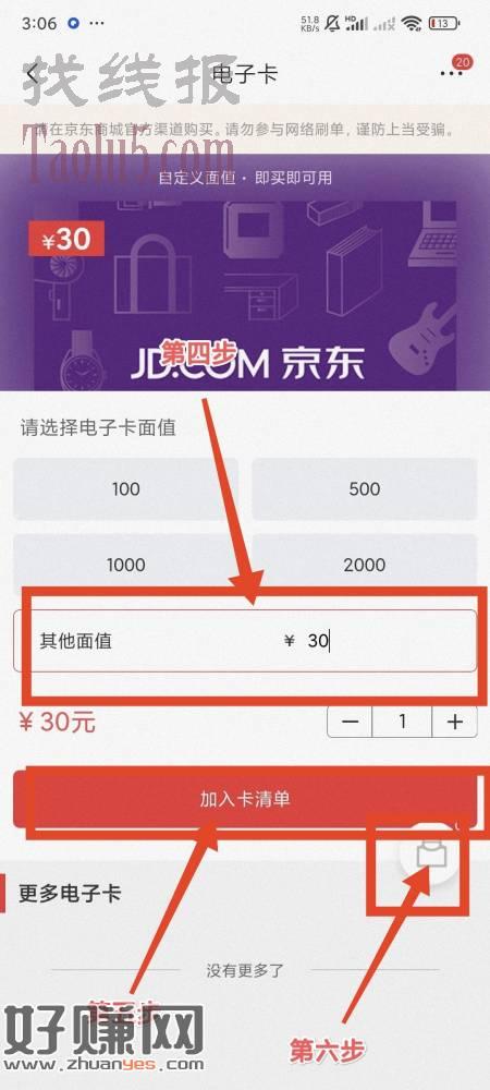 跳转到云闪付,看看弹出来的窗上面有没有一个去APP付款,如果没有就先选邮政卡,有就点去APP付款此时会出现很多银行的列表给你选,选择邮政银行就会跳转到邮政银行APP付款,在支付页面会有一个30-10的优惠出现,付款完成即可花20买30e卡