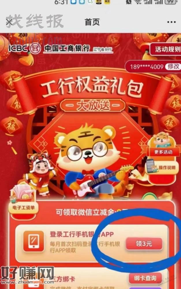 辽宁(大连除外)~工行手机银行11月微信扫码领3元立减金