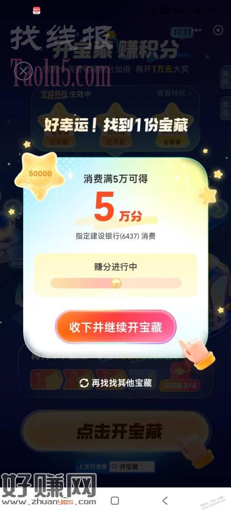 搜开宝藏,除了抽xing/用卡消费红包,还可以抽到消费得积分等