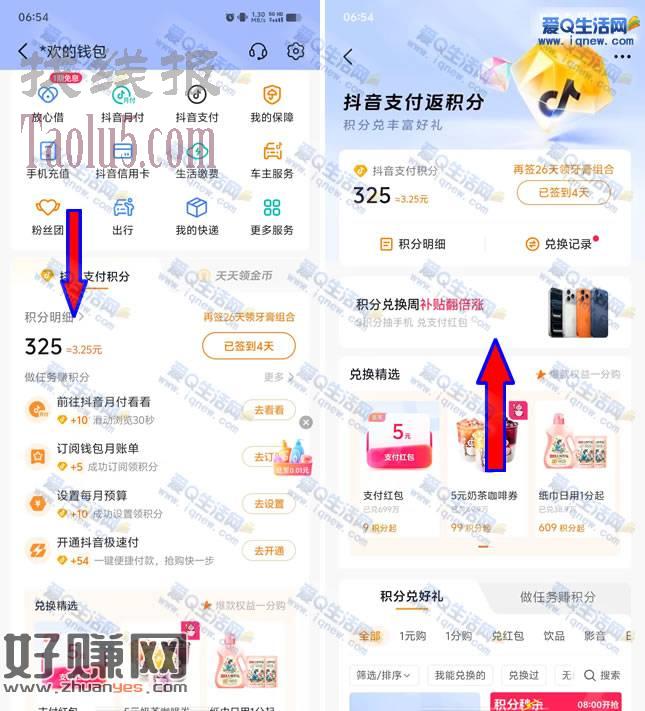 亲测2元现金 1元支付券 抖音积分兑换周抽奖