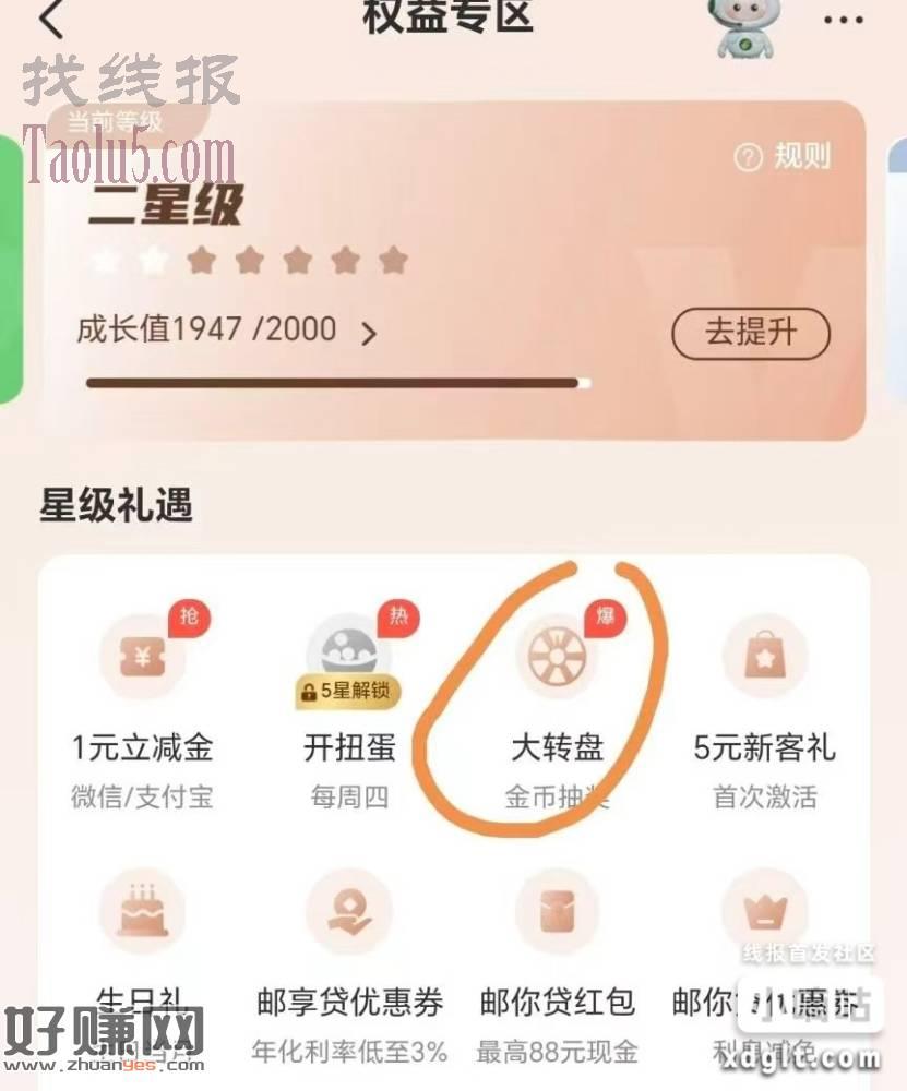 邮z银行,大转盘,做任务抽奖,大概2.5,必中的吧