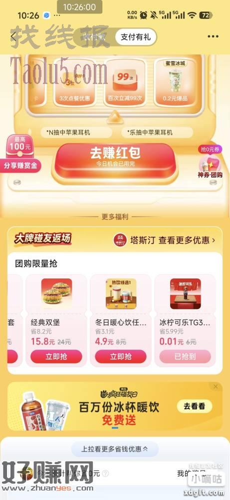 zfb碰友日 中间商品有0.01塔斯汀可乐