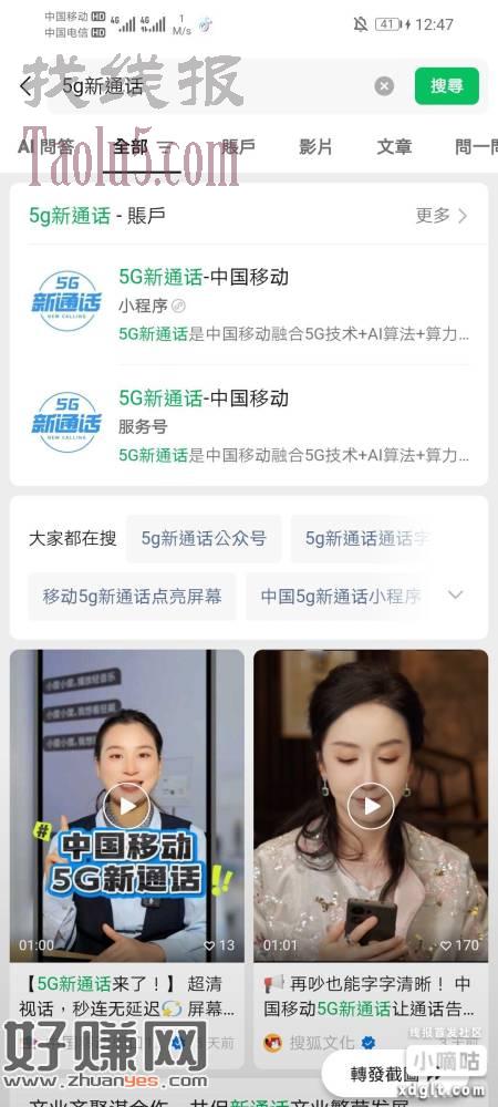 微信搜索小程序5G新通话
