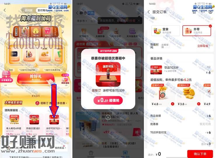 亲测0.01元喝塔斯汀冰柠可乐 支付宝支付有礼