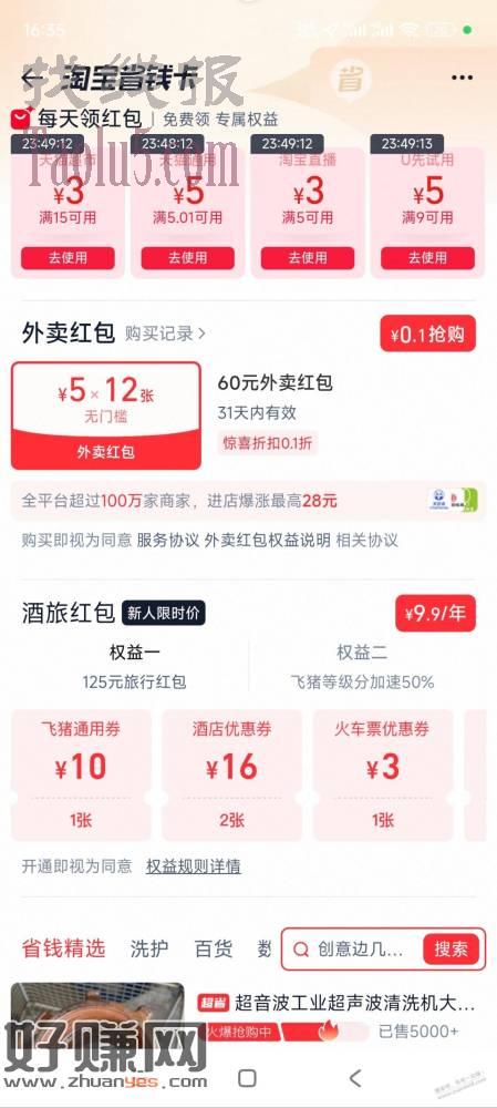 淘宝,省钱卡上面领取我5.1-5自测,我有