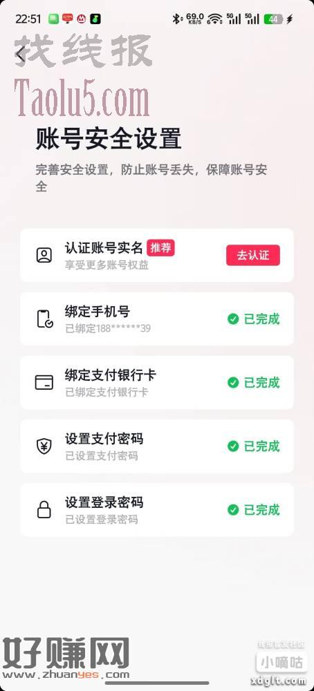抖音部分人完善账号安全有2元。我这是很早的一个账号了 有的