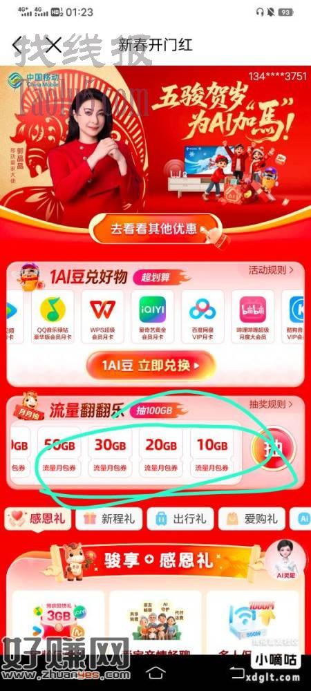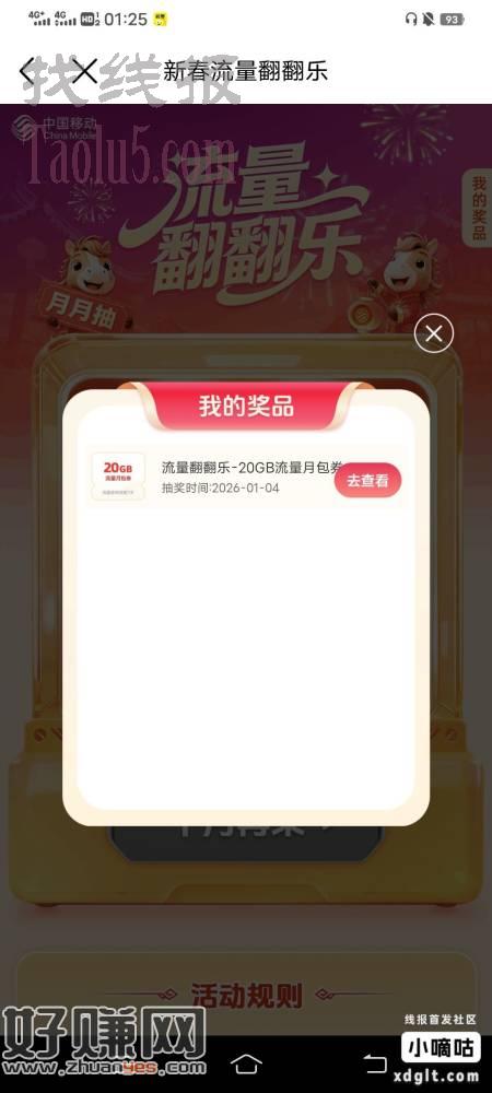冲冲冲,移动首页全国活动抽最高100g流量,俺中20g