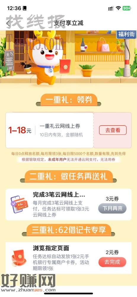 可以领3次1-18,下面那个用了三次后也可以领6-3,最下面浏览后也有10-2