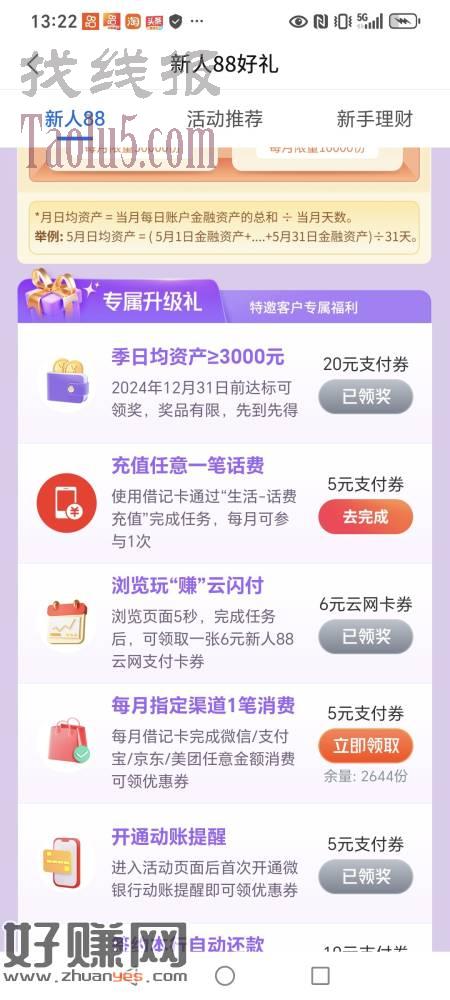 交通银行新人88好礼有个每月可以做的任务,每日五,去做
