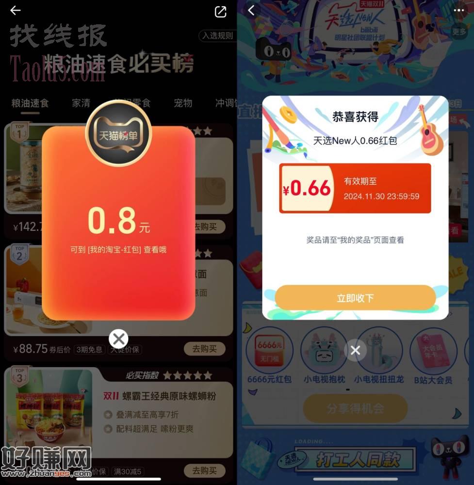 淘宝直接抽多个通用购物红包