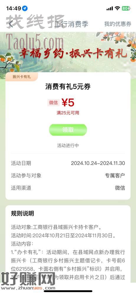 工行消费季消费有礼立减金25-5,位置江西