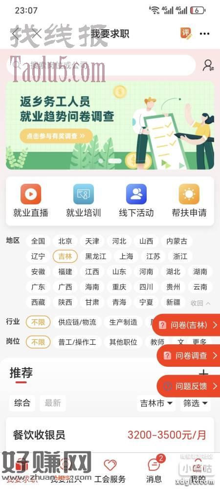 吉林问券 地区职工之家吉林才有显示 (目前没什么水了)