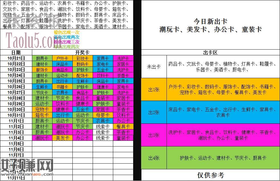 下图是最新的出卡数据,仅供参考!