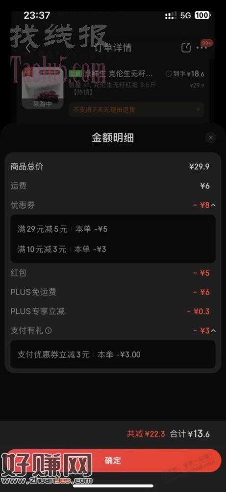 叠加之前领的五元红包 建行支付优惠。13.6到手3.5斤新疆红提