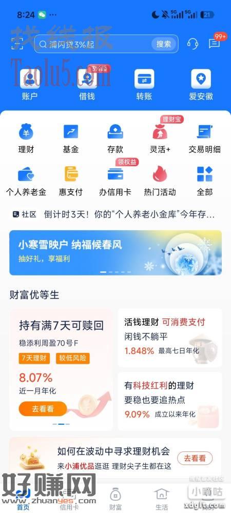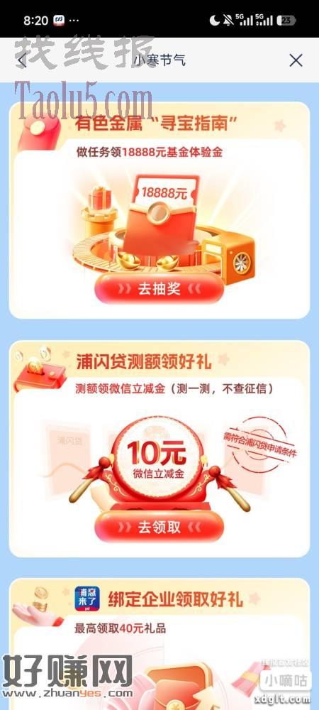 浦发银行,首页横幅内,多个活动,18888体验金,测额,10