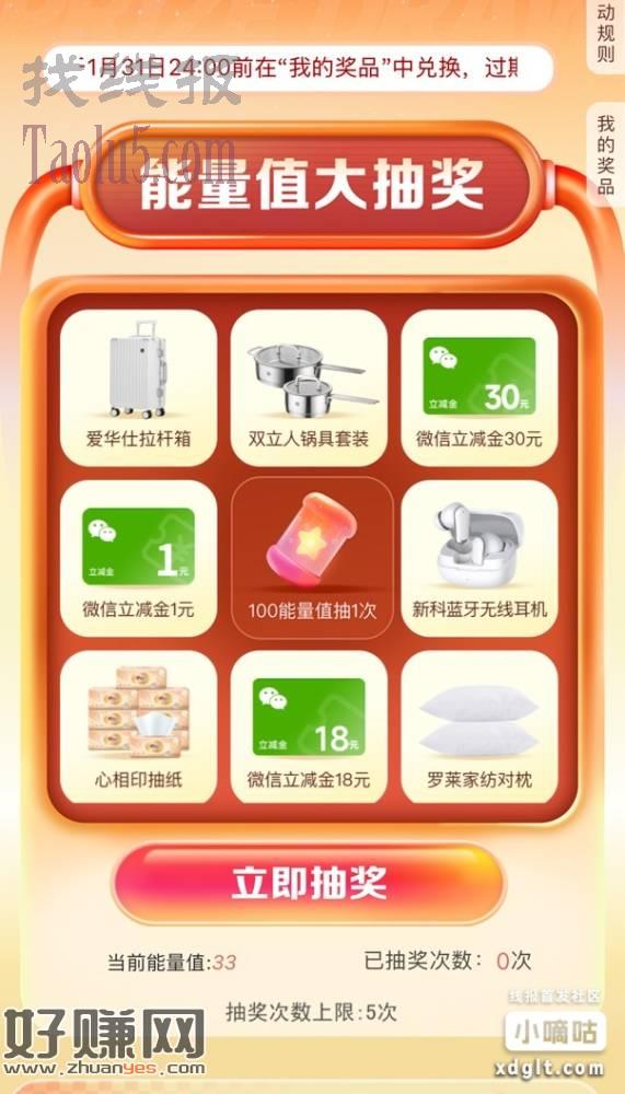 中信能量值抽奖活动开始了,最低一元立减金最高30元立减金,去