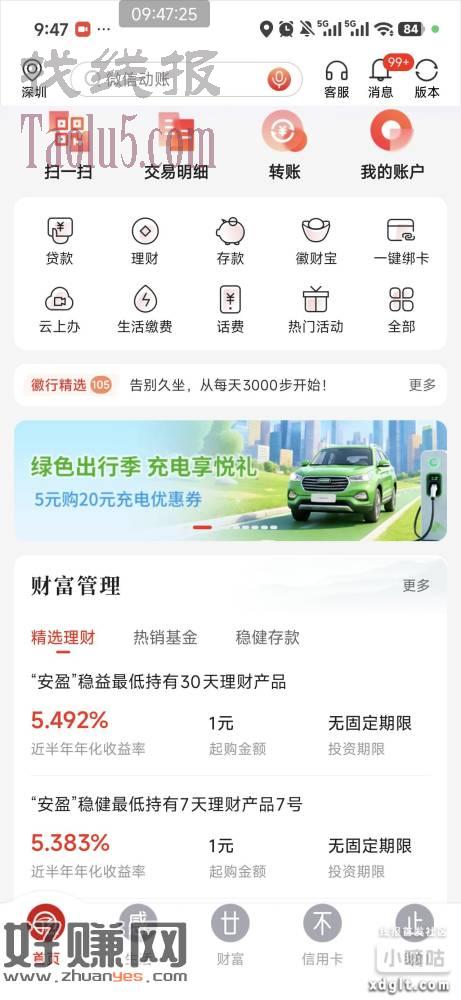 徽商银行横幅5买20充电立减金,可以充值e充电小程序余额1块