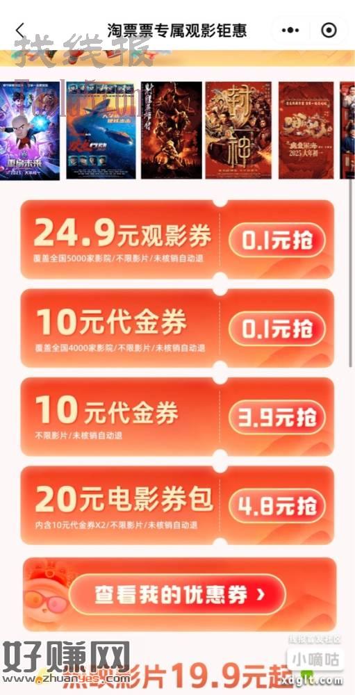 0.1亓买2张10亓电影票券
