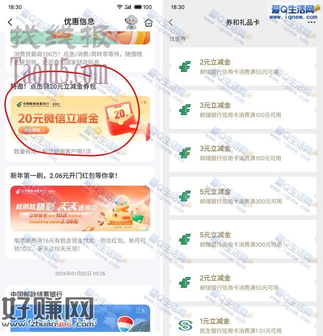邮储银行APP-右上角进【消息中心】-【优惠信息】-下拉看看,受邀的有【20元微信立减金】点击领取