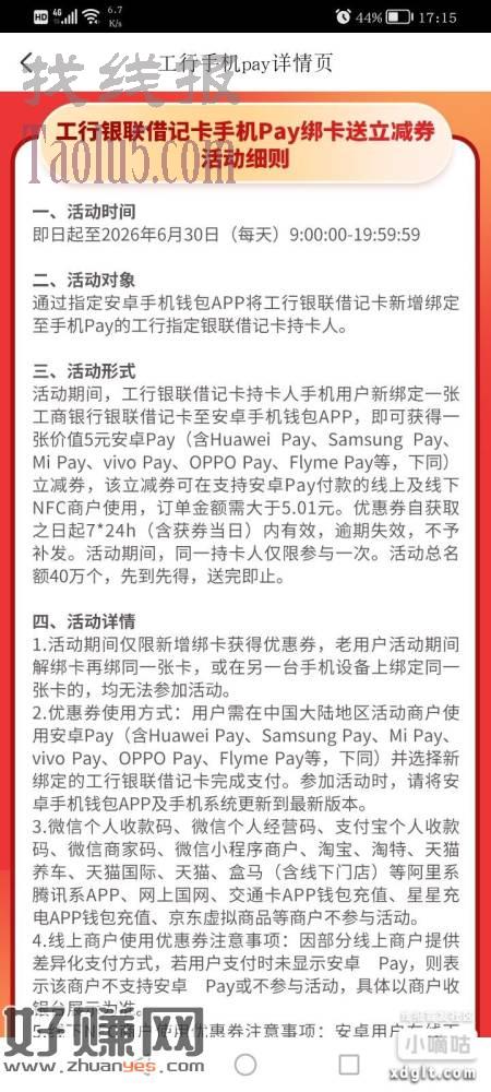手机pay绑一张没绑过的工行卡得5,线下核销好像要NFC