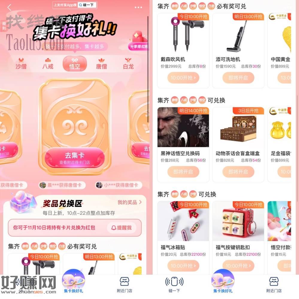 支付宝碰一下支付集卡得实物