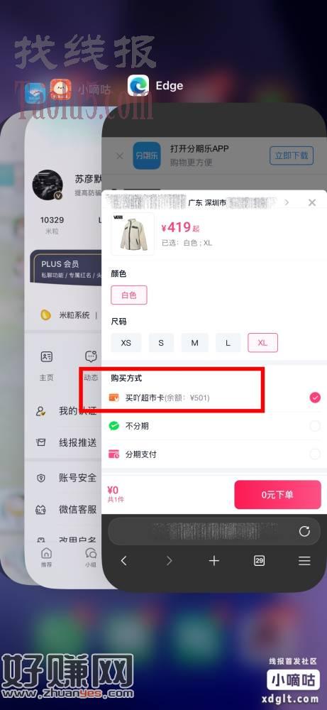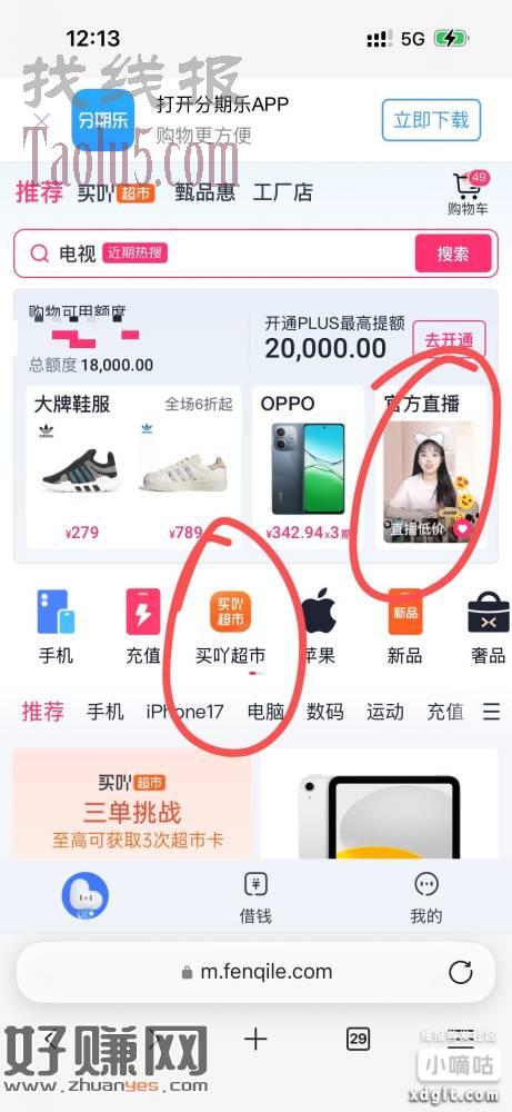 分期楽直播间最近天天都能领超市咔,自己没事都去领下,有效期比较久,领了可以累计多了自己去荬吖超市里面买点日用品或者衣服鞋子之类的,偶尔会上架可回收的数码产品
