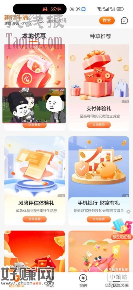 建设银行 建行生活 活动中心 往下拉有个财富有礼,